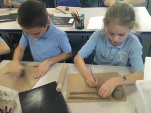 The children had a challenge to create a Bell Beaker-style pot by using a combination of pinch, coil, and pattern
