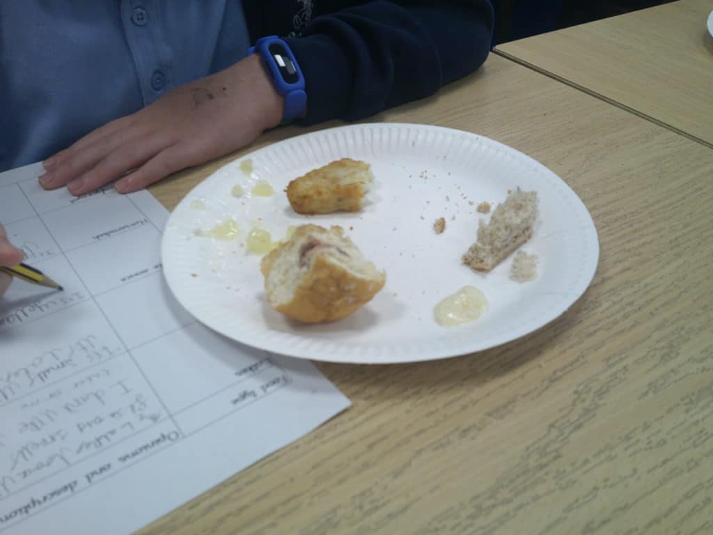 Today we have enjoyed a food tasting session based on some of the foods traditionally eaten at Hanukkah; including beef, horseradish, apple sauce, hash browns and doughnuts. Following this we learnt about the game dreidel which is often played by Jewish families. We made our own dreidels and played the game in groups.