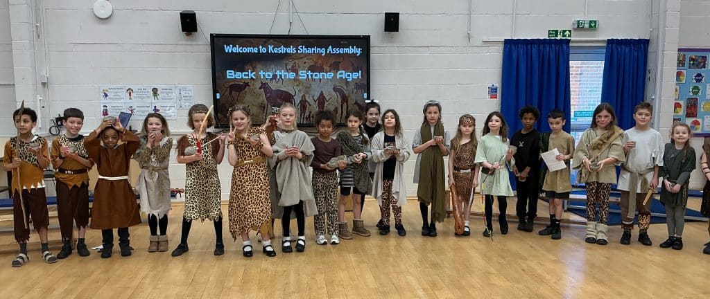 Well done to Kestrels for their fantastic performance in their sharing assembly on Wednesday! They took the audience for a huge step back in time to the Stone Age, traveling through the Bronze Age, to the Iron Age and back to today, helping everyone to learn along the way by sharing their learning. They all worked so hard to learn their parts and delivered their lines superbly. This was a good warm up for the children as soon they will start learning their parts for the year 3 production!