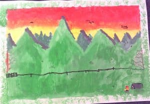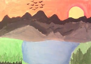Here are some of our final landscapes in art. We looked at different landscapes and experimented drawing different ones. We then designed and painted our own. We have developed our understanding of tints, tones and shades and used this to paint our landscape.