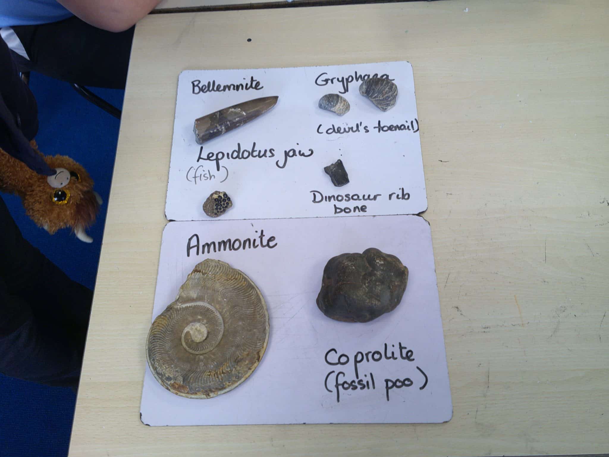 Mrs Martin brought in her fossil collection to share with us. We learned how fossils are created when a creature dies and is covered by mud, which then turns to stone over millions of years. Over time, the skeleton of the animal is replaced by minerals, forming a fossil.