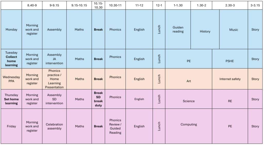 Class Timetable for Summer Term 2026
